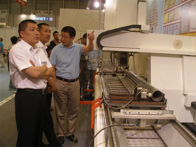 本屆展會主推的新型高速四軸數控加工中心,吸引了全國各地的客商前來觀展。