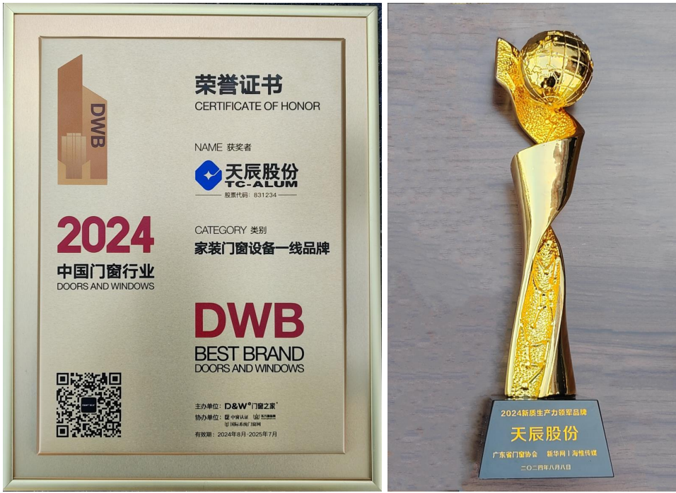 ??在會議的頒獎典禮上,天辰股份榮獲會議晚宴總冠名、“家裝門窗設備一線品牌”以及“新質生產力領軍品牌”的榮譽。